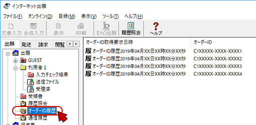 - 他のパソコンでデータ出力し、本パソコンでデータ入力した書類の場合は、対応するオーダーID履歴がありません。