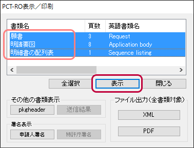 - 〔表示/印刷〕ボタンをクリックすると「PCT-RO 表示/印刷」画面がでます。